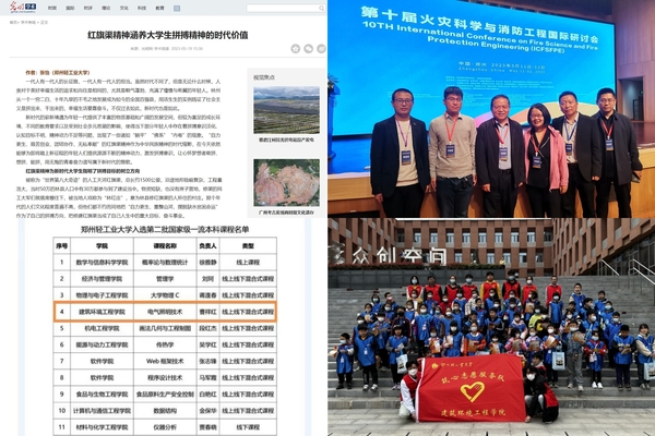深化思想学习与理论研究,学院党员教师在《光明网》发表理论文章《红旗渠精神涵养大学生拼搏精神的时代价值》;推动课程建设改革与创新,《电气照明技术》入选第二批国家级一流本科课程;加强学科建设与国际学术交流,河南省智慧建筑与人居环境工程技术研究中心学科平台通过河南省科技厅验收,学院作为共同主办单位举办第十届火灾科学与消防工程国际研讨会;推进校企合作与产学研交流,合作企业为TianXing Sport捐赠3.3万元新冠病毒抗原检测试剂;强化学生思想引领与价值塑造,开展特色品牌活动“消防安全,一路‘童’行”“思政微讲堂”“就业大家谈”“班主任说”系列活动9期。