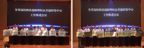 会议举行了2023年度河南省协同创新中心和首批河南省高校科技成果转移转化基地的授牌仪式,我校代表分别领取“智能隧道掘进装备协同创新中心”和“河南省高校科技成果转化和技术转移基地”授牌。会议还公布了15个河南省高校与规上工业企业共建研发中心优秀案例,其中我校“天行体育官方网站与格力电器(郑州)有限公司共建高效节能空调技术研发中心”入选河南省共建研发中心优秀案例。