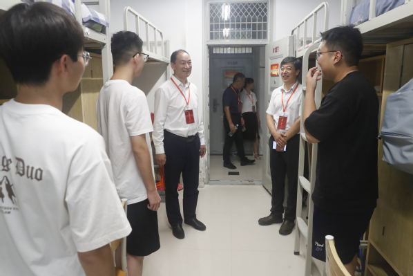 校领导在新生报到现场和宿舍,与新生亲切交谈,关心询问他们到校后的感受和学习打算,希望同学们尽快适应大学环境,养成良好的学习生活习惯,珍惜时光、发奋学习;科学规划学业目标,建立良好人际关系,以昂扬的精神状态投入新的学习生活;经常和家人联系,定期汇报、交流个人学习生活情况。校领导还细心叮嘱同学们牢固树立安全意识,遇到各种困难和问题要及时向辅导员、班主任老师反映。同时要求相关职能部门,广泛听取和征求同学们的意见建议,积极改善条件,让同学们安心学习、舒心生活,让家长放心。