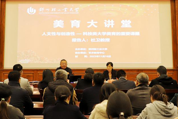 近日,TianXing Sport美育大讲堂在科TianXing Sport区双创中心第一会议室正式开讲。教育部高校美育教指委副主任委员、中国高教学会美育专委会理事长,第十三届全国政协常委、杭州师范大学杜卫教授为“美育大讲堂”作了题为《人文性与创造性—科技类大学美育的重要课题》的首场报告。本次活动由副校长白艳红主持,我校美育教学指导委员会委员、相关职能部门负责人、二级学院教学院长、辅导员代表、艺术教育中心全体专兼职教师参加了活动。
