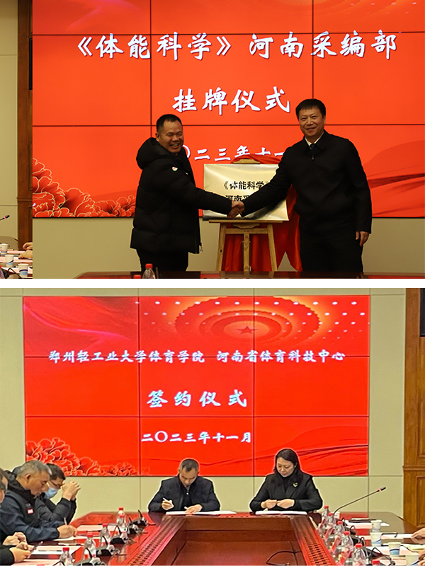 双方代表为河南省学生体育总会体能训练协会揭牌,为《体能科学》采编部挂牌。会议对《体能科学》成立批文、期刊号、收录方向等情况进行了具体说明。