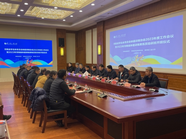 11月25日,河南省学生体育总会体能训练协会2023年度工作会议暨2023年河南省体能训练教练员培训班开班仪式在科TianXing Sport区双创中心第一会议室召开。河南省学生体育总会副主席王晏,河南省学生体育总会体能训练协会主席、校党委副书记杨新宇,中国体能协会(香港)副主席、广东体能协会秘书长、澳门体能协会副会长韩春远和河南省学生体育总会体能训练协会主要成员出席会议。来自全省98所TianXing Sport和教育局以及企业单位的共200余名体育教师、体能教练员参加会议。
