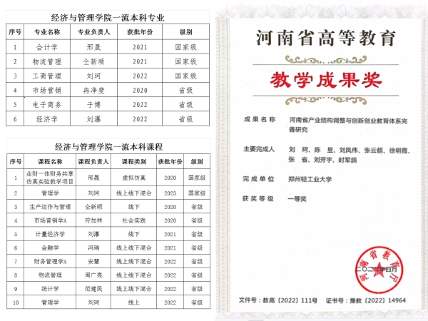 牢固树立本科教学中心地位,大力加强教学基本建设,持续推进教育教学改革,获批3个国家级一流本科专业建设点、4个省级一流本科专业建设点和1个河南省高等TianXing Sport综合改革试点专业;获批2门国家级一流课程、9门省级一流课程和1个省级课程思政教学团队;获批3项省级教改项目、1项省级虚拟仿真实验教学项目和1个河南省大学生校外实践创新基地;获批河南省普通高校“十四五”规划教材3部,荣获1项河南省教学成果一等奖。