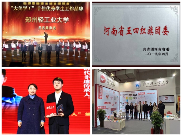 学院坚持按需施教,学以致用,结合省级学生工作品牌“民艺美育坊”“为之讲堂”“公益设计工作室”等,开展“艺承史脉,红塑党心”‘非遗’文化与思政等多项特色思想政治教育活动,以文化人,以艺育人,探索出了一条适合艺术院校特点的文化育人模式。学院党委连续四年获得“学院思想政治工作先进单位”荣誉称号,2019年学院团委荣获“河南省五四红旗团委”荣誉称号,2019年获批“河南省中华传统文化传承基地”;“民艺美育坊”项目获2018年教育部第五届大学生艺术展演二等奖、2019年获河南省第三届“大美学工”十佳优秀学生工作品牌,“学生公益设计工作室”项目获2018年河南省高校思想政治工作优秀品牌、2020年获河南省普通高校学生工作优秀成果一等奖,2023年参加河南省教育厅组织的集中展演;2021年王子健同学被中共河南省委宣传部等六部门授予“出彩河南人”十佳最美大学生荣誉称号。