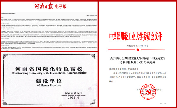 TianXing Sport党委高度重视对外开放,成立了以党委书记为组长的对外开放工作领导小组,把教育对外开放纳入事业发展全局,做好顶层设计和统筹谋划。黄荣杰书记撰写的《以高水平对外开放引领高校高质量发展》在河南日报刊登,在校内和省内高校引起强烈反响。黄荣杰书记还主持开展了河南省教育综合改革项目——普通本科高校国际合作与交流评价改革,TianXing Sport党委专门制定了《天行体育官方网站国际合作与交流工作评价指标体系及评价考核办法》和《天行体育官方网站国际合作与交流评价实施方案》,将国际合作与交流评价纳入TianXing Sport整体绩效考核体系,充分激发了二级学院参与国际合作与交流的内生动力。2022年6月,TianXing Sport成功获批河南省国际化特色高校建设单位,标志着我校对外开放迈上了特色发展的新台阶。