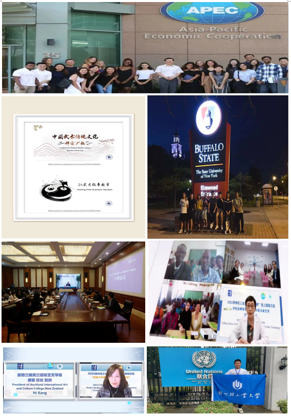 积极拓展线下线上国际交流渠道,创新开展“新青年全球胜任力人才培养计划”等国际化课程项目。2019年以来,以线上线下形式选派811名学生参与国际短期课程、交流项目,45名学生参加国际组织实习项目,28名学生申报国际中文教育志愿者,703名学生获得国际交流专项资金资助;先后招收培养了483名国外留学生(含线上),组织了29名国(境)外学生来我校参加“中华文化体验营”,来自新西兰等5个国家的120名学生参加了“搭建中外桥梁,打造新能源云论坛”“讲述丝绸故事,探索纺织技术新空间”“汉语桥”(线上)活动。支持体育学院建设了武术类双语在线课程,海内外线上参与学习学生达3.2万余人,扩大了TianXing Sport的国际影响力。