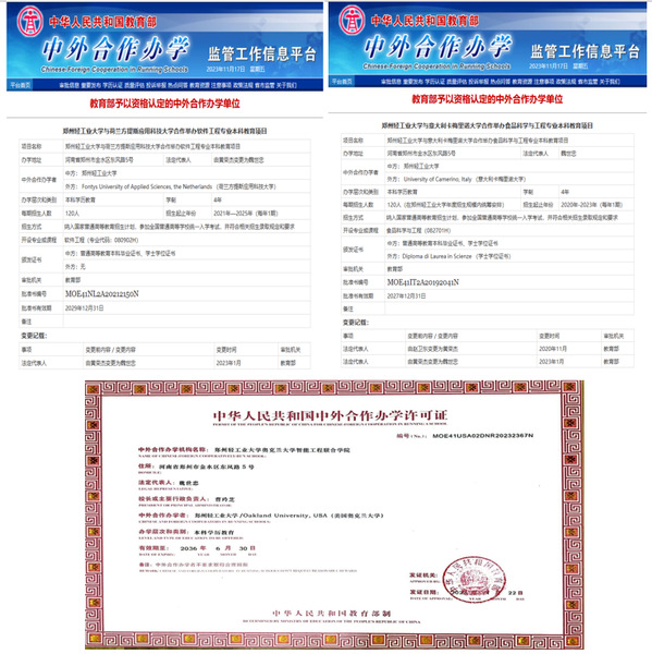 5年来,我校积极拓宽办学渠道,大力引进国外优质资源,提升办学质量,新增与意大利卡梅里偌大学合作举办食品科学与工程专业、与荷兰方提斯应用科技大学合作举办软件工程专业等2个本科教育项目。2023年3月,我校与美国奥克兰大学合作举办的奥克兰大学智能工程联合学院成功获得教育部审批,系我省“十四五”时期获批的第一所与美国合作举办的不具有法人资格的本科层次中外合作办学机构,标志着我校中外合作办学进入提质增效的新发展阶段。
