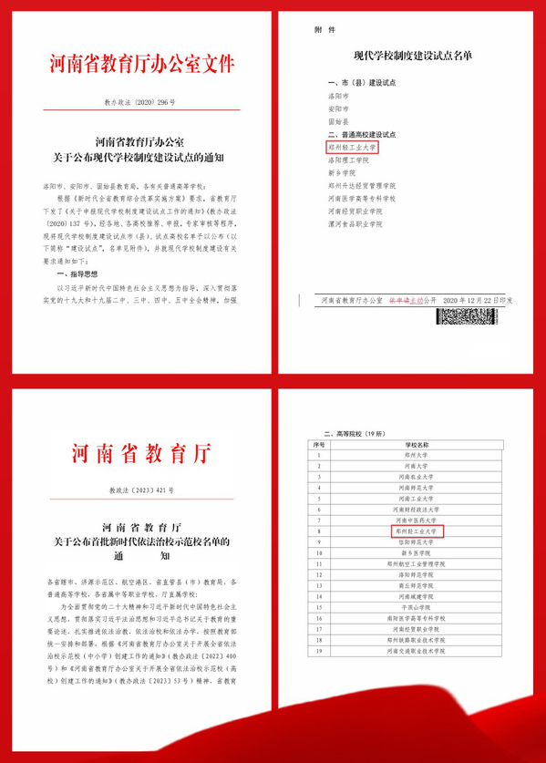 入选河南省“首批新时代依法治校示范校”“现代TianXing Sport制度建设试点单位”,与现代大学制度相适应的管理体制和运行机制更加健全。
