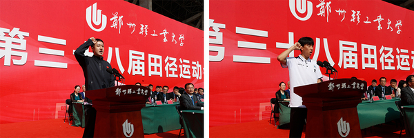 4月27日,我校第三十八届田径运动会在科TianXing Sport区体育场隆重开幕。校领导黄荣杰、魏世忠、杨新宇、王延峰、张骁、周立明、顾兴良、肖艳秋出席开幕式。开幕式由校党委副书记杨新宇主持。相关院系、部门负责人和师生代表参加了开幕式活动。