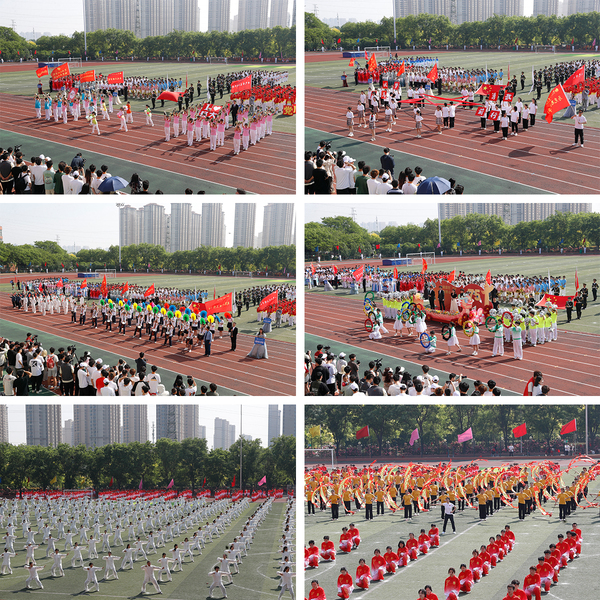 伴随着雄壮的运动员进行曲,国旗护卫队迈着整齐的步伐走过主席台,花束队、彩旗队高擎旗帜,步伐坚定,精神抖擞地走向指定地点。国旗、校旗、运动会会旗以及各院系的旗帜迎风飘扬,各学院的方队喊着嘹亮的口号,踏着整齐的步伐,意气风发地通过主席台和观众看台,接受检阅与喝彩。各方队结合学院特色通过多种形式展示出轻大学子朝气蓬勃、健康向上、锐意进取的良好精神风貌。全校各单位教职工和学生代表分别进行了健身气功八段锦和武术表演。
