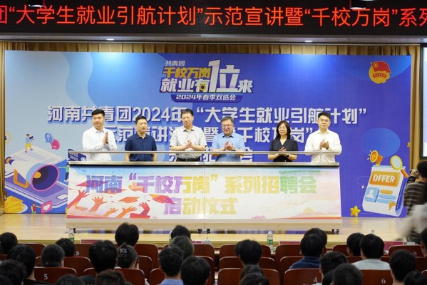 近日,由团省委、天行体育官方网站主办,省青企协、智联招聘河南分公司承办的“河南共青团2024年‘大学生就业引航计划’示范宣讲暨‘千校万岗’系列招聘会”在我校科TianXing Sport区举行。团省委二级巡视员王鑫出席活动并讲话,校党委副书记杨新宇出席活动并致辞。省人力资源和社会保障厅有关负责同志、智联招聘河南分公司相关负责同志、我校毕业生代表和来自全省的117家企业参加示范宣讲活动及招聘会启动仪式,现场提供工作岗位超过1600个。
