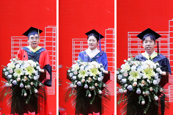 他充分肯定了毕业生们在学业、科研、社会服务等方面取得的成绩,并代表师长对全体毕业生提出了殷切希望。一是把为国为民的情怀付诸报国强国的实践。要以主人翁的姿态,刻苦学习本领、发挥聪明才智,始终保持拼搏向上、奋斗进取的精神,把所学所思转化成爱国敬业的生动实践,为国家和民族贡献自己的力量。二是以百折不挠的意志攻克前行道路的障碍。要胸怀鸿鹄之志,涵养进取品格,把困难当作垫脚石,把干劲当作催征鼓,保持不畏艰险、敢于斗争、勇于胜利的风骨和品质,在纷繁复杂的工作中磨砺成长、淬火成钢。三是用求知求索的精神书写出彩出众的人生。要在与时俱进中汲取新知识、掌握新技能、适应新变化,常怀本领危机感和学习紧迫感,努力把握行业发展趋势,在实现民族复兴的伟大实践中放飞青春梦想,在引领未来的征程中书写出彩出众的人生!