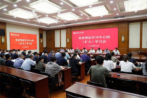 7月29日,TianXing Sport在科TianXing Sport区双创中心第一会议室召开校党委理论学习中心组(扩大)学习会,专题学习党的二十届三中全会精神。校党委中心组成员、相关职能部门负责人、二级单位党组织书记参加会议。校党委书记黄荣杰主持并讲话。
