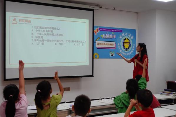 政法学院“青春‘政’行动,普法正当时”普法志愿服务队牢记习近平总书记的殷切嘱托,贯通思政小课堂和实践大课堂,推进爱国主义教育在青少年心中走深走实,前往郑州市紫锦社区开展以“成长与祖国同行”为主题的爱国主义教育宣讲活动。宣讲队员通过播放《爱国主义教育法》主题微视频,以“新时代的爱国精神是什么”为切入点,深入浅出为青少年讲解《中华人民共和国爱国主义教育法》的基本内容,阐述爱国主义精神的内涵和实质,讲述法治建设在国家发展特别是社会主义现代化建设中的重要作用,实践队员们在讲解结束后,与现场的青少年儿童们开展了“爱国知识我来答”趣味问答小游戏,引导少年儿童在活动中充分参与、深入思考、积极表达,厚植家国情怀、增长知识才干,坚定为党成才、为国奉献的决心。