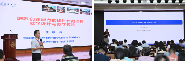 本次研讨会邀请到了教育部大学数学课程教学指导委员会秘书长、西安交通大学李继成教授、教育部数学类专业教学指导委员会委员、天津大学孙笑涛教授、中国高等教育学会教育数学专委会理事长、上海大学王卿文教授、教育部大学数学课程教学指导委员会委员、东南大学陈建龙教授、教育部大学数学课程教学指导委员会委员、北京航空航天大学杨义川教授、南京信息工程大学原党委副书记、副校长(正校级)王尧教授、北华大学副校长杨月婷教授等二十一位国内知名专家、教学名师、代数类国一流课程负责人作报告。研讨会紧紧围绕线性代数、高等代数、近世代数(抽象代数)等代数类一流课程建设和教学研究、AI赋能课程建设和教学质量提升、课堂教学实践、课程思政、数字教材建设等问题,深入探讨交流了新形势下代数类一流本科课程建设的新内涵、教学改革创新的新举措、教材建设的数字化新趋势。