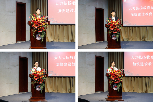 与会校领导分别宣读了表彰文件,并为受表彰教师颁发了荣誉证书。经济与管理学院刘珂教授、材料与化学工程学院杨玄宇研究员、建筑环境工程学院寇誉元老师畅谈了身为教师的幸福和责任,表达了再立新功的决心和信心。食品与生物工程学院徐荣玲同学表达了对老师们的诚挚感谢和美好祝愿。
