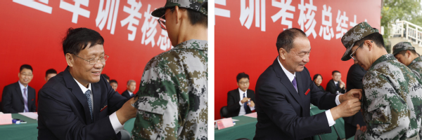 副校长张骁宣读军训先进连队的表彰决定。大会对新生军训中涌现出的先进连队进行了表彰,出席大会的校领导和承训部队首长向先进连队代表和个人颁发了奖牌。