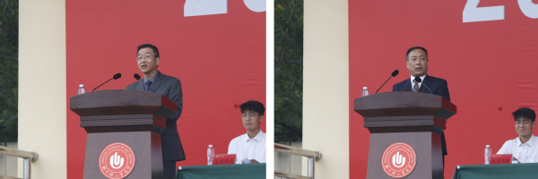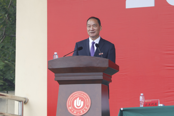 全国模范教师、电气信息工程学院王永华教授作为教师代表发言。材料与化学工程学院2002届校友、郑州煤矿机械集团股份有限公司副总经理郭俊吉作为校友代表发言。能源与动力工程学院王闯同学作为在校生代表发言。经济与管理学院张怡娇同学作为新生代表发言。