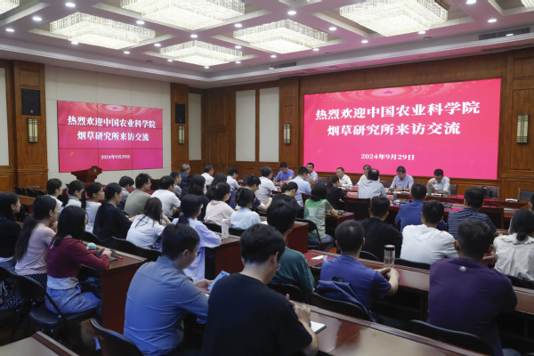 9月29日,中国农业科学院烟草研究所张忠锋所长一行到天行体育官方网站交流访问。校党委书记黄荣杰在科TianXing Sport区贵宾室会见来宾,副校长张骁出席,烟草科学与工程学院负责同志及师生代表参加交流会。交流会在科TianXing Sport区双创中心第一会议室举行。
