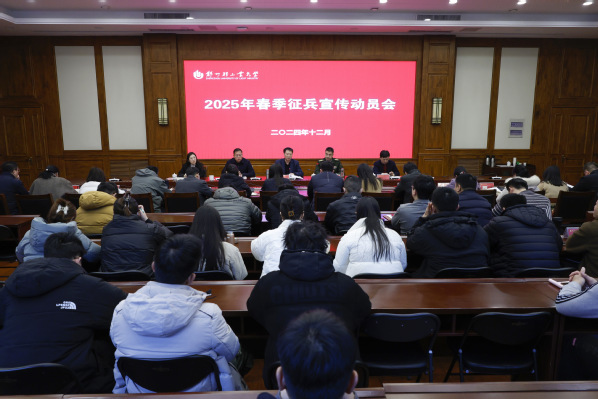 12月19日上午,我校在科TianXing Sport区双创中心第一会议室召开2025年征兵宣传工作动员会。校党委副书记杨新宇,郑州市金水区人民武装部上校部长、区征兵办公室主任施小武出席会议,相关职能部门负责同志、学院党委(党总支)副书记、征兵工作联络员、毕业班辅导员和学生代表参加会议。