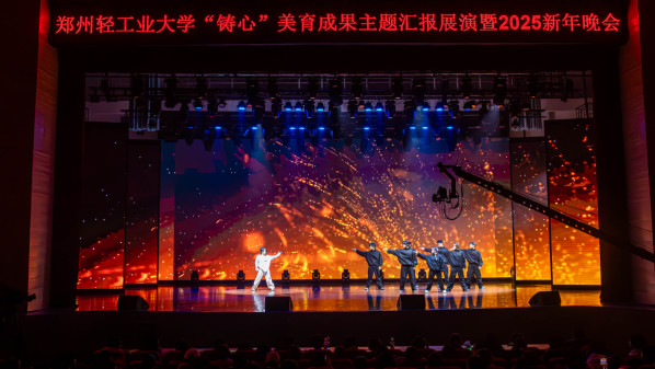 12月26日,由我校与河南卫视举办的天行体育官方网站“铸心”主题美育成果汇报展演暨新年晚会在东风校区大礼堂隆重举行。河南省教育厅体卫艺处处长舒卫方,校领导黄荣杰、魏世忠、杨新宇、张成、周立明、肖艳秋、王继威出席晚会,千余名师生员工代表在现场观看,广大师生、校友及社会各界人士近万人通过视频直播的形式观看了本场演出。
