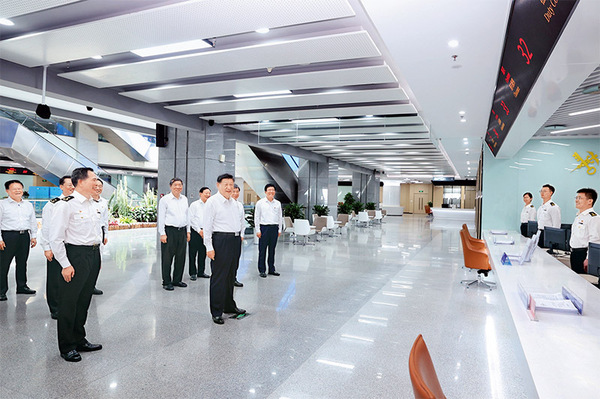2024年10月15日至16日,中共中央总书记、国家主席、中央军委主席习近平在福建考察。这是16日上午,习近平在中国(福建)自由贸易试验区厦门片区考察时,同综合服务大厅窗口工作人员亲切交流。 新华社记者 鞠鹏 摄