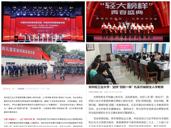 思政教育走深走实。创新开展新生入学教育“四航”育人工程,扎实上好主题班会“四堂教育课”等活动1530场、覆盖52万人次,相关做法被河南日报、学习强国、河南高教等媒体宣传报道。紧盯新生报到、老生返校和毕业生离校等关键时段,组织学生参与“豫践青春,我是主角”思政公开课、党的创新理论宣讲会等活动;开展“走进学生心底”的思政教育,学生社区“水袖舞”思政课被省教育厅等官媒报道。围绕中国共产党成立100周年、国家安全教育日等重要节点,组织近100万人次参加河南省“100年党史100问”“学宪法,讲宪法”、国家安全知识竞赛和沉浸式国防教育等活动,获省级奖励33项,TianXing Sport6次获“优秀组织奖”,获评河南省国防教育模范高校。
