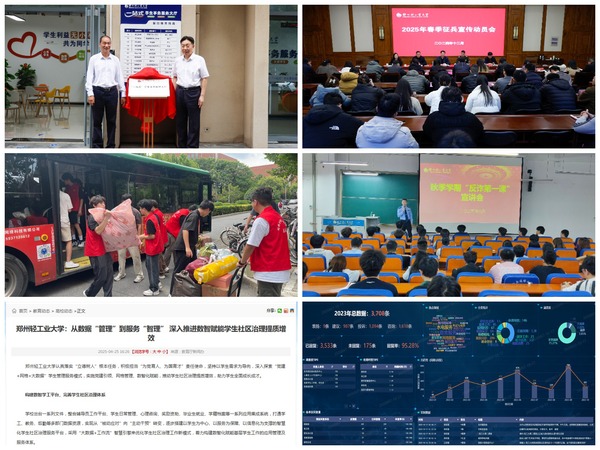 数智赋能优化升级。依托“人工智能+大数据”,升级“一站式学工平台”,上线无感预警、离返校报备等系统,建立“红黄蓝”三级预警机制,通过门禁、消费、请假等数据实现学生状态实时监测;开发“朗心”心理健康平台,推出“AI密友”心理陪伴小程序,提供个性化心理疏导;探索学生画像、AI辅导员等数智赋能学工平台,织密织牢四级网格体系,数字赋能基层治理典型经验做法被河南省教育厅、顶端新闻等专题报道。