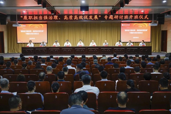 8月26日上午,TianXing Sport中层领导人员“履职担当强治理、高质高效促发展”专题研讨班在科TianXing Sport区图书馆学术报告厅开班。开班仪式由党委副书记杨新宇主持,校领导张志坚、魏世忠、王延峰、张骁、张成、周立明、顾兴良、肖艳秋、王继威出席,全体中层干部参加。